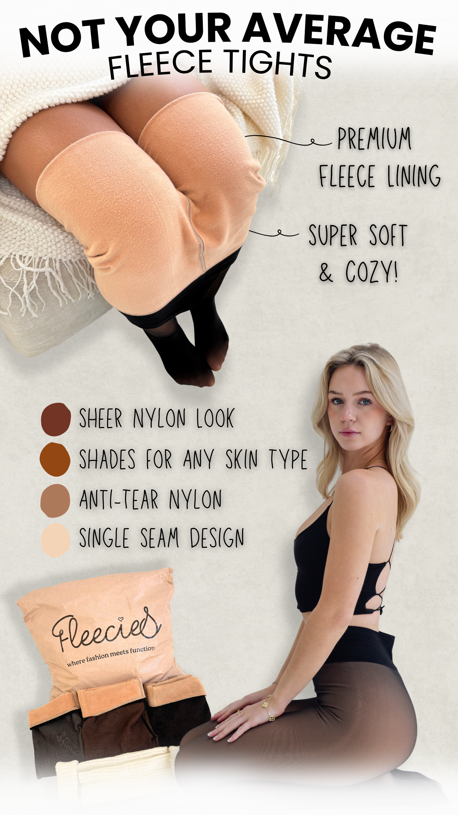 Our Fleecies™ Originals feature our signature 1-seam, anti-diaper-bum design for sizes XS-XL — created for the most flattering, smooth look and cozy fit yet.